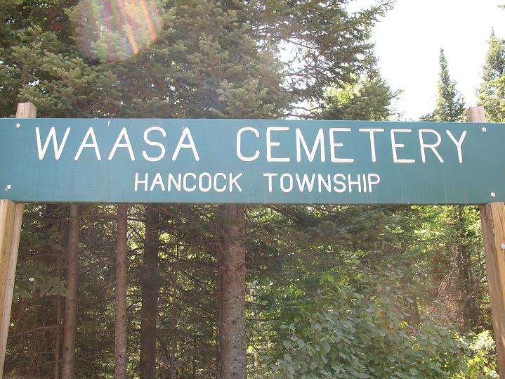The Waasa Cemetery is a cemetery in Hancock Township located off of Waasa Rd. On N Lincoln Road (US 41) turn NW onto Lake Annie Rd. Follow Lake Annie Rd for 15 minutes and then turn East onto Waasa Rd, the cemetery will be on the right.